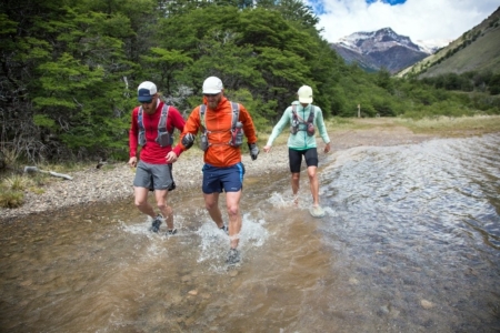 僕らは巨大な氷河に覆われた、2,000メートルの屹立した山に囲まれていた。暗雲は上空にあり、全方向に冠雪の山々を垣間みることができた。このセクションでは平均時速2マイルがやっとだった。氷のように冷たい徒渉を何度も繰り返した僕らは、足をドライに保つことを諦めた。水の冷たさは特別で足首は凍り、徒渉後20〜30秒は走ることがほとんど不可能だった。血行が戻るまで、ルートを示す次のケルンを探して岩に覆われた川床をハイキングするしかなかった。
